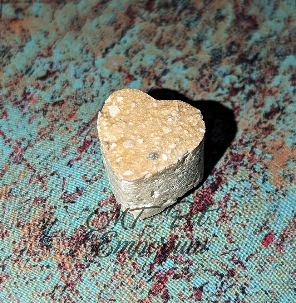 Yummy calcium bites for your crabs! Oyster shell, coral calcium, and eggshell held together with egg. Our crabs like these so much that they drag them off in the tank!